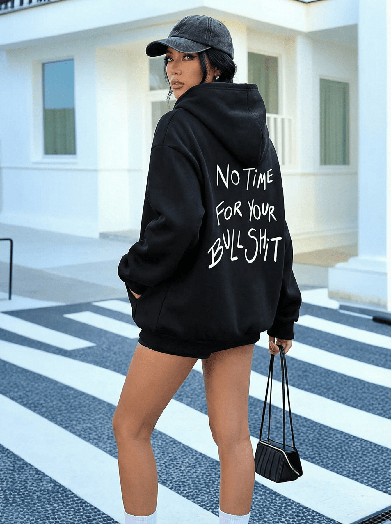 SOPHIE HOODED PULLOVER SWEATSHIRT - NO TIME FOR BULLSH*T DESIGN