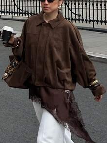 This casual brown bomber jacket is the perfect combination of style and comfort. Featuring a front zipper and functional pockets, it’s made from woven polyester for durability. The long sleeves and relaxed fit make it ideal for daily wear, casual outings, or a cozy layer during cooler days.
